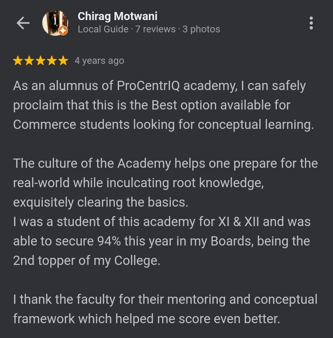 We are the best commerce academy in Nagpur, offering world-class tuition classes to help students prepare for competitive exams and entrance tests. Our faculty comprises highly experienced and dedicated teachers and mentors who are passionate about instilling the necessary knowledge in students to achieve great results. Join us today and take the first step towards a successful career in commerce. Let procentrIQ Academy help guide you towards a successful career in commerce!